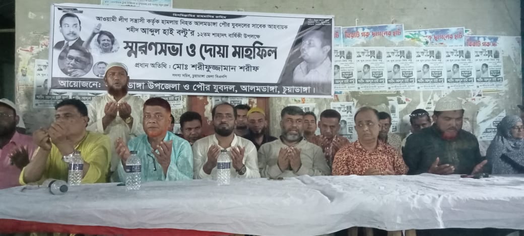 স্মরণসভা শেষে আলমডাঙ্গা পৌর যুবদলের আহবায়ক শহীদ আব্দুল হাই বল্টুর আত্মার মাগফেরাত কামনায় দোয়া পরিচালনা করেন মাওলানা ওমর ফারুক।