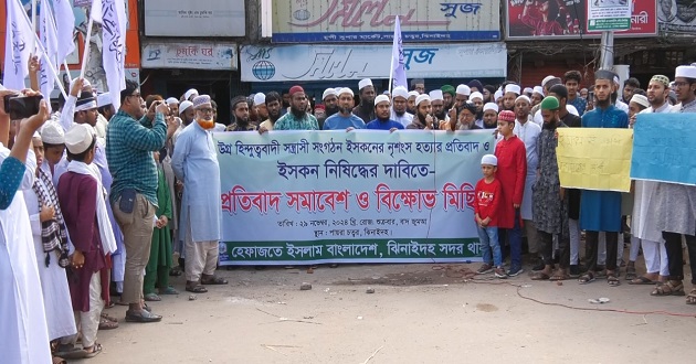 ইসকনের নৃশংস হত্যাকেন্ডর প্রতিবাদ ও ইসকন নিষিদ্ধের দাবীতে ঝিনাইদহে প্রতিবাদ বিক্ষোভ মিছিল ও সমাবেশ হেফাজত ইসলাম বাংলাদেশ।