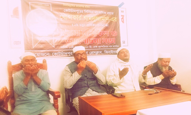 ঝিনাইদহের কোটচাঁদপুরের প্রয়াত সিনিয়র সাংবাদিক ও কোটচাঁদপুর উপজেলা প্রেসক্লাবের সভাপতি আব্দুল্লাহ বাশারের পিতা খোন্দকার শামসুজ্জামানের দ্বিতীয় মৃত্যুবার্ষিকী উপলক্ষে দোয়া মাহফিল ও আলোচনা সভা অনুষ্ঠিত হয়েছে।