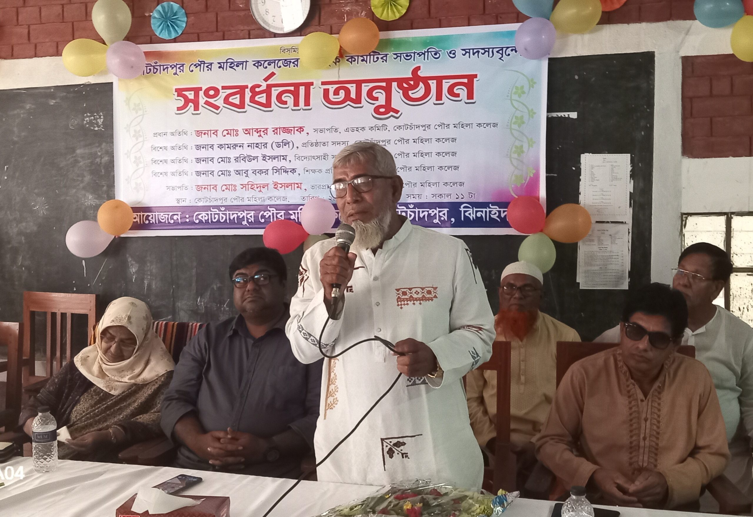 সংবর্ধনা অনুষ্ঠানে সভাপতিত্ব করেন, কলেজের অধ্যক্ষ (ভারপ্রাপ্ত) শহিদুল ইসলাম। প্রধান অতিথি হিসেবে উপস্থিত ছিলেন,কোটচাঁদপুর পৌর মহিলা কলেজের নবগঠিত এডহক কমিটির সভাপতি ও কোটচাঁদপুর উপজেলা বিএনপির সভাপতি আব্দুর রাজ্জাক।