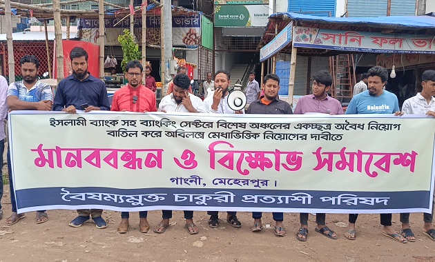 হোম গাংনী গাংনীতে মেধাভিত্তিক নিয়োগের দাবিতে মানববন্ধন ও বিক্ষোভ সমাবেশ