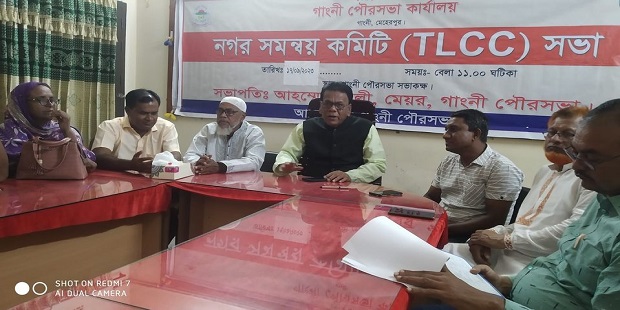 গাংনীতে শহর সমন্বয় কমিটির (টিএলসিসি) সদস্যদের নিয়ে দ্বি-মাসিক সভা অনুষ্ঠিত হয়েছে। আজ রবিবার বেলা সাড়ে ১১ টার সময় গাংনী পৌরসভার আয়োজনে পৌরসভার সভাকক্ষে শহর সমন্বয় কমিটির (টিএলসিসি) সদস্যদের এই সভা অনুষ্ঠিত হয়। কর্মশালায় সভাপতিত্ব করেন, গাংনী পৌরসভার মেয়র আহম্মেদ আলী।
