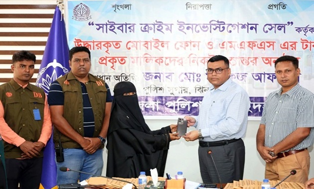 ঝিনাইদহ জেলা পুলিশের আইসিটি অ্যান্ড মিডিয়া (সাইবার সেল) শাখা তথ্য-প্রযুক্তির সহায়তায় হারানো ৫৭টি মোবাইল ফোন এবং বিকাশ প্রতারণার মাধ্যমে হাতিয়ে নেওয়া ৬৩ হাজার ৫৪২ টাকা উদ্ধার করে প্রকৃত মালিকদের নিকট হস্তান্তর করেছে।