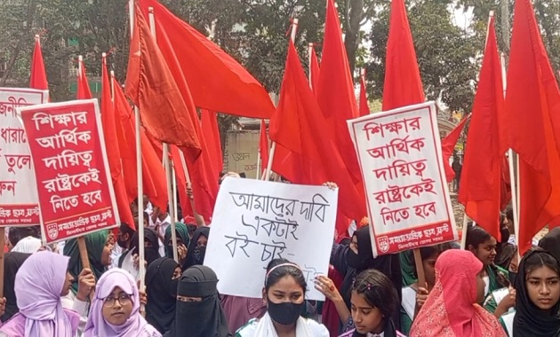 ঝিনাইদহে শিক্ষার্থীদের বইয়ের দাবিতে লাল পতাকা মিছিল অনুষ্ঠিত হয়েছে।