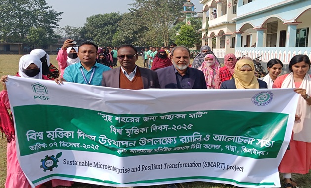 ‘সুস্থ শহরের জন্য স্বাস্থ্যকর মাটি’- এই শ্লোগানকে সামনে রেখে ঝিনাইদহে উদযাপিত হয়েছে বিশ্ব মৃত্তিকা দিবস। রোববার সকালে সদর উপজেলার আলহাজ্ব মশিউর রহমান ডিগ্রি কলেজ মিলনায়তনে এ উপলক্ষে আলোচনা সভা ও কুইজ প্রতিযোগিতার আয়োজন করা হয়। বিশ্বব্যাংকের অর্থায়নে এবং পিকেএসএফ-এর সহযোগিতায় অনুষ্ঠানটি আয়োজন করে আরআরএফ।
