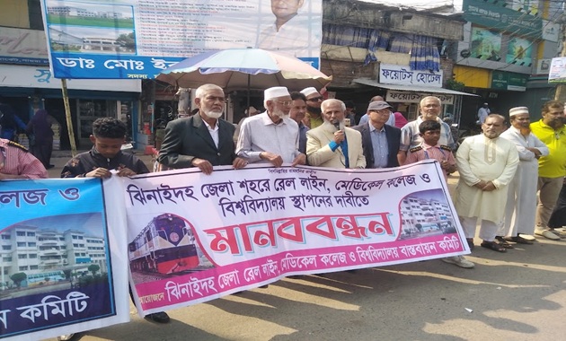 হোম ঝিনাইদহ ঝিনাইদহে রেল লাইন, মেডিকেল কলেজ ও বিশ্ববিদ্যালয় স্থাপনের দাবীতে মানববন্ধন