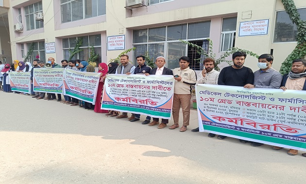 হোম ঝিনাইদহ ঝিনাইদহে ১০ম গ্রেড বাস্তবায়নের দাবিতে মেডিকেল টেকনোলজিস্টদের অর্ধ-দিবস কর্মবিরতি