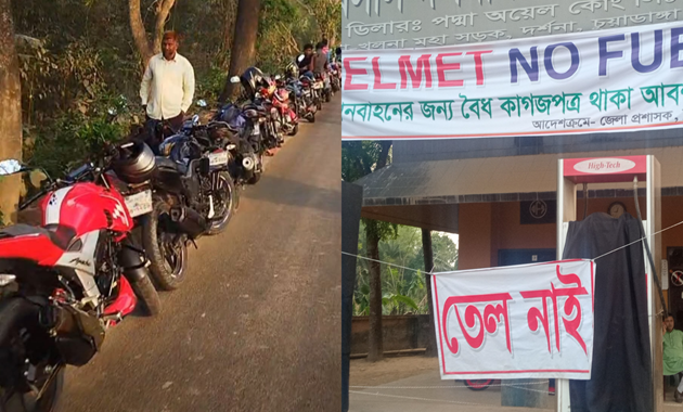 হোম চুয়াডাঙ্গা দর্শনায় ১৪ ঘণ্টা লাইনে থেকেও পেট্রোল মেলেনি, বাইকারদের ক্ষোভ