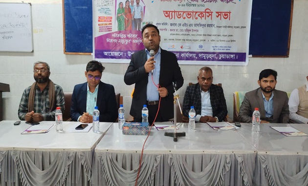 দামুড়হুদায় ৬ থেকে ১১ ডিসেম্বর পরিবার কল্যাণ সেবা ও প্রচার সপ্তাহ উপলক্ষে অ্যাডভোকেসি সভা অনুষ্ঠিত হয়েছে। গতকাল বৃহস্পতিবার বিকাল সাড়ে ৩টার সময় “পরিকল্পিত পরিবার, নিরাপদ মাতৃত্বের অধিকার” এই স্লোগানকে সামনে রেখে উপজেলা স্বাস্থ্য কমপ্লেক্সের সভাকক্ষে উপজেলা পরিবার পরিকল্পনা কার্যালয়ের আয়োজনে সভাটি অনুষ্ঠিত হয়।