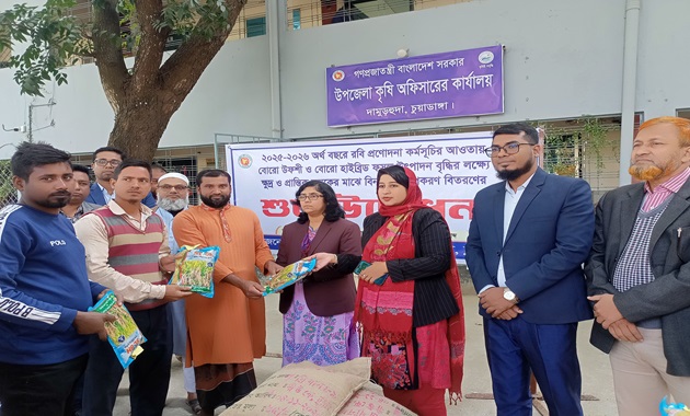 দামুড়হুদায় ফসল উৎপাদন বৃদ্ধির লক্ষ্যে ক্ষুদ্র ও প্রান্তিক কৃষকদের মাঝে বিনামূল্যে বীজ ও সার বিতরণের উদ্বোধন করা হয়েছে।