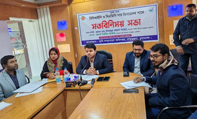 উপজেলা কৃষি কর্মকর্তা শারমিন আক্তারের সভাপতিত্বে মতবিনিময় সভায় প্রধান অতিথি ছিলেন, নির্বাহী কর্মকর্তা উবায়দুর রহমান সাহেল। এসময় তিনি উপজেলার বিআইসি ও বিএডিসি সার ডিলারদের উদ্দেশ্যে বলেন একজন প্রকৃতি কৃষক ছাড়া অন্য কোন সার ব্যবসার নামে বালাই নাশক ব্যবসায়ি, রাজনৈতিক দলের নামে, ভূয়া কৃষক সাজিয়ে সিন্ডিকেট করে সার উত্তল করছে এরকম কাউকে এক ছটাক সারও দেওয়া যাবে না। এসব অনিয়ম করে সার দেওয়ার ব্যাপারে আপনারা ডিলারদের সহযোগিতা আছে ইতিমধ্যে তদন্ত করে আমি জানতে পেরেছি। আপনারা ডিলাররা অধিক লাভের আশায় এসব অনিয়ম করছেন। আপনারা ডিলারশীপ চালাতে গিয়ে যদি সরকারি কোন আইন কানুন না মানেন, যেমন সার ডিলারশীপের সাথে বালাইনাশক, তেল ও ফ্লেক্সিলোডসহ অন্য কোন ব্যবসা করা যাবে না। কৃষকদের স্বার্থ রক্ষার্থে আপনাদের শুধু সার বেঁচা বিক্রি করতে হবে। কৃষকদের সাথে খারাপ আচরণ করা যাবে না। আপনার সার ডিলারশীপ ব্যবসায় যদি লাভ না থাকে তাহলে ডিলারশীপ ছেড়ে দেন। আমরা প্রশাসন অন্য কাউকে দিয়ে ডিলারশীপ চালাতে পারি কী দেখি। আপনারা ডিলারশীপ ছাড়বেন না আবার অধিক মুনাফা লাভের আশায় কৃষকদের সাথে খারাপ আচরণ করবেন, সরকারি নীতিমালার বাইরে গিয়ে অনিয়ম দুর্নীতি করবেন এব্যাপারে প্রশাসন চুপ করে বসে থাকবে না জেল জরিমানার পাশাপাশি ডিলারশীপ বাতিল করা হবে।