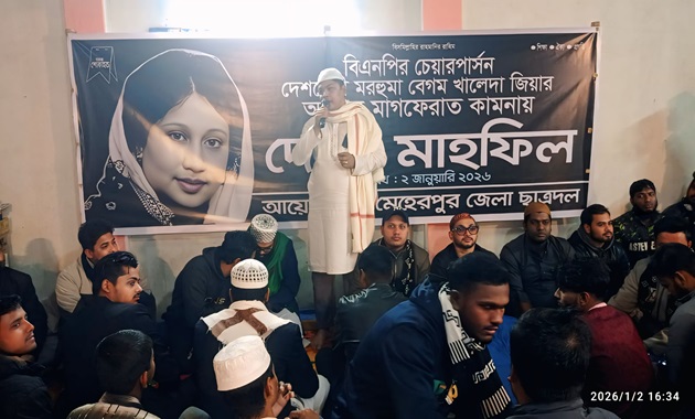 মুজিবনগরে মেহেরপুর জেলা ছাত্রদলের আয়োজনে বিএনপি’র চেয়ারপার্সন ও সাবেক প্রধানমন্ত্রী দেশনেত্রী মরহুমা বেগম খালেদা জিয়ার আত্মার মাগফেরাত কামনায় দোয়া মাহফিল অনুষ্ঠিত হয়েছে।