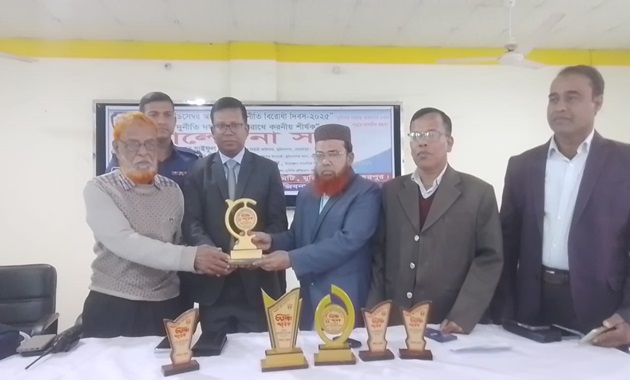 আলোচনা সভা শেষে সম্মাননা স্মারক গ্রহণ করেন অনুষ্ঠানের সহযোগী উপজেলা প্রশাসনের পক্ষে উপজেলা নির্বাহী কর্মকর্তা সাইফুল হুদা, উপজেলা মাধ্যমিক শিক্ষা অফিসার মামুন উদ্দীন আল আজাদ, উপজেলা দুর্নীতি প্রতিরোধ কমিটির সহ-সভাপতি ওমর ফারুক প্রিন্স, সাধারণ সম্পাদক বাকের আলী, সহ-সভাপতি শাহানাজ খাতুন এবং সদস্য ইয়ামিন ইসলাম।