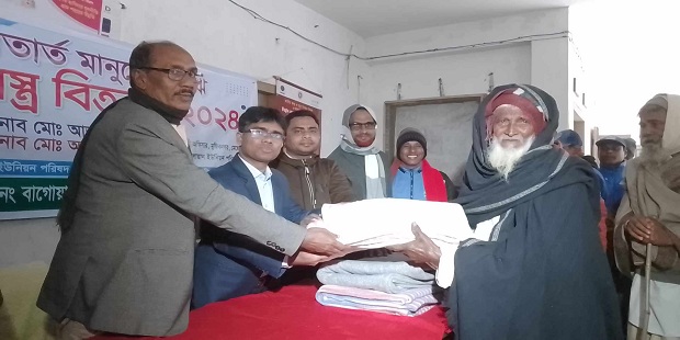 এ সময় আরো উপস্হিত ছিলেন উপজেলা প্রকল্প বাস্তবায়ন কর্মকর্তা মাশরুবা আলম সহ বিভিন্ন ওয়ার্ডের ইউপি সদস্যবৃন্দ। অনুষ্ঠানে বাগোয়ান ইউনিয়নের নিম্ন বিত্ত মানুষের মাঝে ৪৫০ টি কম্বল বিতরণ করা হয়। তীব্র শীতে নিবারণের জন্য বস্ত্র পেয়ে খুশি খেটে খাওয়া মানুষেরা। উল্লেখ্য গেল কয়েকদিন ধরে মৃদু শৈত্য প্রবাহের কবলে পড়ে স্বাভাবিক জীবন যাপন বধাগ্রস্থ হচ্চে সাধারন মানুষের।