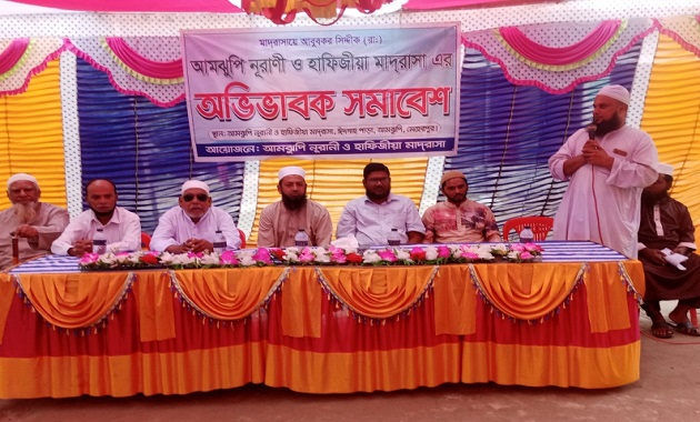 মদরাসার প্রধান শিক্ষক ওমর ফারুকের সঞ্চালনায় অভিভাবক সমাবেশের সভাপতিত্ব করেন হাজী মোঃ শামসুল হুদা শিশির। প্রধান অতিথি হিসেবে ছিলেন জহুরুল ইসলাম খান। বিশেষ অতিথি হিসেবে ছিলেন নুরুল ইসলাম মির, সাহাদুল ইসলাম কানায়, আমঝুপি মাধ্যমিক বিদ্যালয়ের ক্রিয়া শিক্ষক শরীফ উদ্দিন, আমঝুপি মাধ্যমিক বালিকা বিদ্যালয়ের শিক্ষক আলহাজ্ব বশির আহম্মেদ এবং সাংবাদিক শহিদুল ইসলাম।