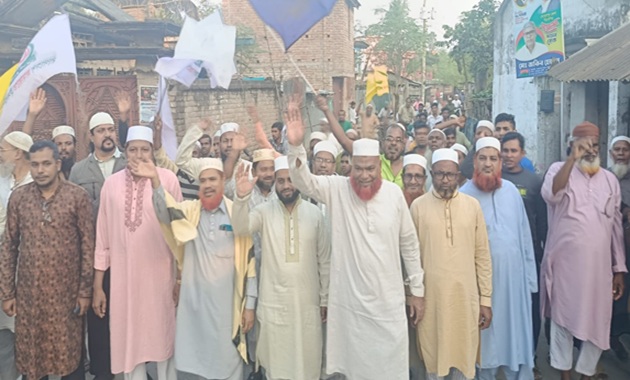 হোম জামায়াত মেহেরপুরের কলাইডাঙ্গায় জামায়াত প্রার্থী তাজউদ্দিন খানের গণসংযোগ