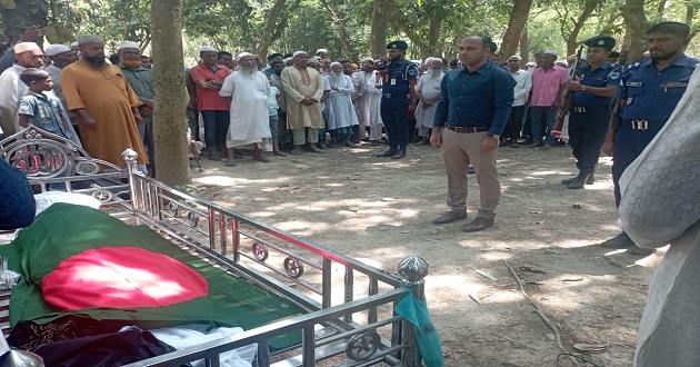 আজ বৃহস্পতিবার (২৫ এপ্রিল) সকাল সাড়ে ১০টার সময় বাদিয়াপাড়া গ্রামে তাকে গার্ড অব অনার দেওয়া হয়। গাংনী থানা পুলিশের একটি দল গার্ড অব অনার প্রদান করেন।