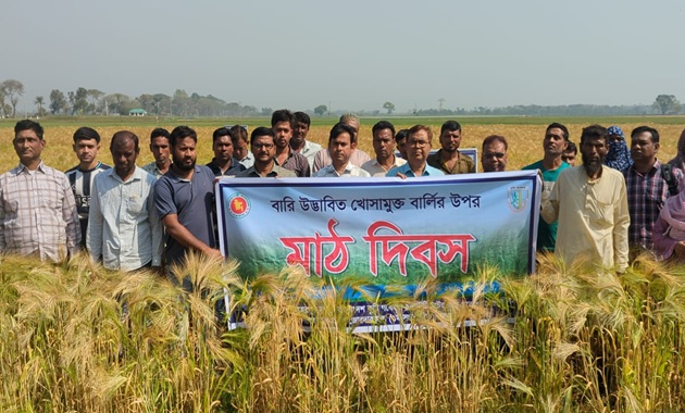 হোম কৃষি মেহেরপুরে অনুর্বর জমিতে উৎপাদনশীল উদ্ভাবিত বার্লির মাঠ দিবস