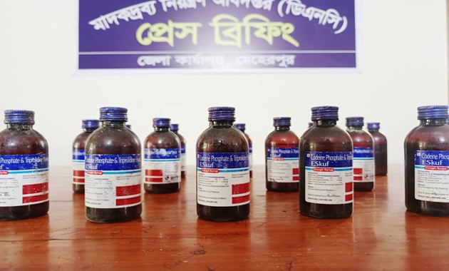হোম টপ নিউজ মেহেরপুরে ঘাস কাটার মেশিনের নিচ থেকে ১৭ বোতল কোডিন সিরাপ উদ্ধার