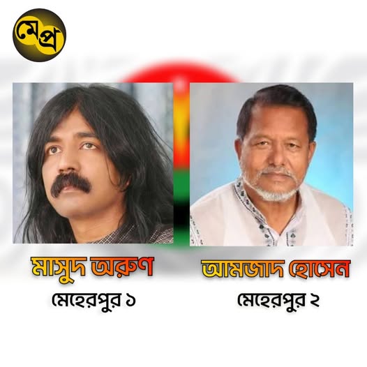 মেহেরপুর-১ আসনে বিএনপির কেন্দ্রীয় নির্বাহী কমিটির সদস্য, সাবেক সংসদ সদস্য ও জেলা বিএনপির সাবেক সভাপতি মাসুদ অরুন এবং মেহেরপুর-২ (গাংনী) আসনে জেলা বিএনপির সাবেক সভাপতি ও সাবেক সংসদ সদস্য আমজাদ হোসেনের নাম ঘোষণা করা হয়েছে।