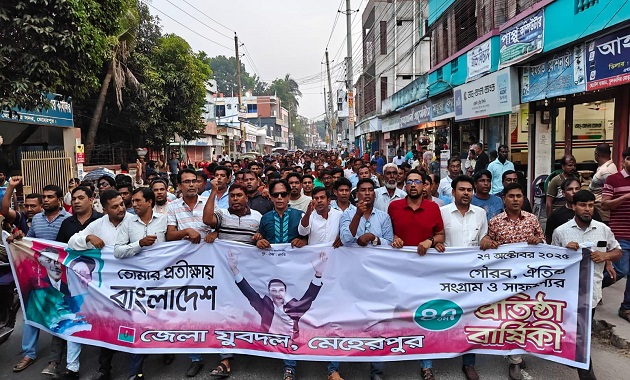 র্যালিতে নেতৃত্ব দেন মেহেরপুর জেলা যুবদলের সাধারণ সম্পাদক মো. কাউসার আলী।