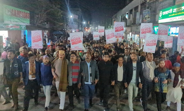 বিক্ষোভ মিছিলে অংশ নেওয়া নেতাকর্মীরা মেহেরপুর-১ আসনের মনোনয়ন পুনর্বিবেচনার দাবি জানিয়ে স্লোগান দিতে থাকেন।