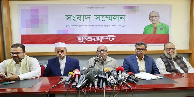 বুধবার (২২ নভেম্বর) দুপুরে জাতীয় প্রেস ক্লাবে সংবাদ সম্মেলনের মাধ্যমে নতুন এই জোট ‘যুক্তফ্রন্ট’ আত্মপ্রকাশ করে। এ জোটে রয়েছে বাংলাদেশ জাতীয় পার্টি, বাংলাদেশ মুসলিম লীগ (বিএমএল) ও বাংলাদেশ কল্যাণ পার্টি।
