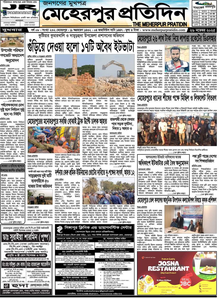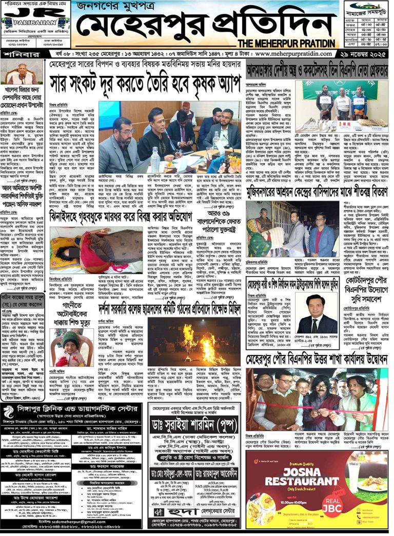 বুধবার | ৩রা ডিসেম্বর, ২০২৫ খ্রিস্টাব্দ | হেমন্তকাল