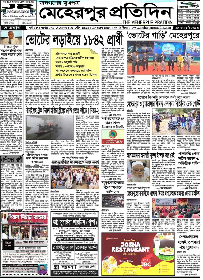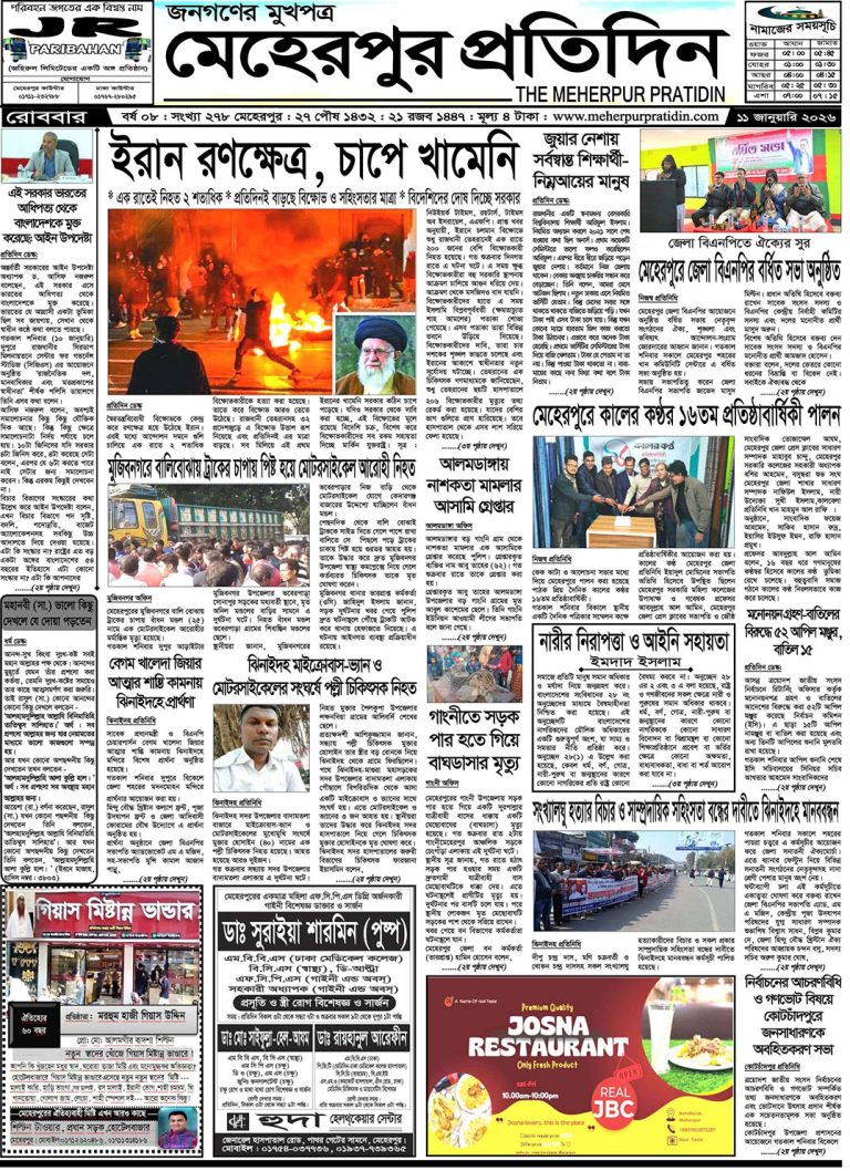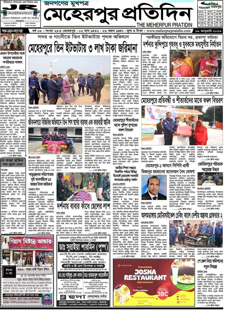 শুক্রবার | ১৬ই জানুয়ারি, ২০২৬ খ্রিস্টাব্দ | শীতকাল