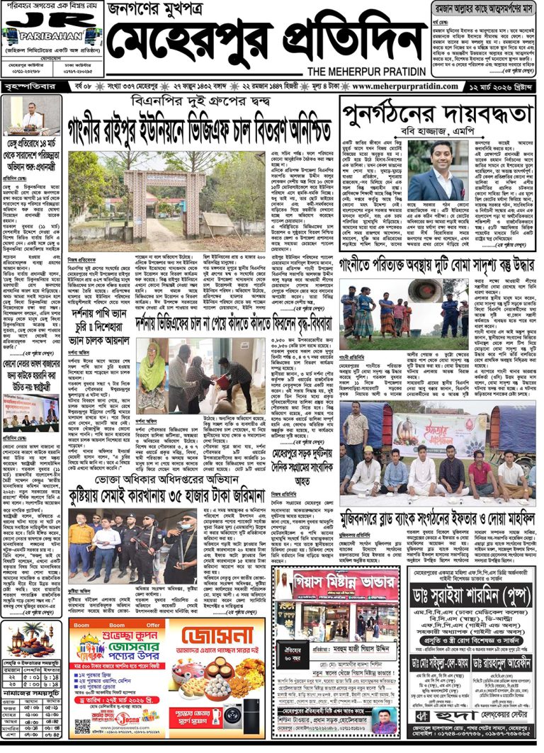 © ২০২৬ মেহেরপুর প্রতিদিন । সর্বস্বত্ব স্বত্বাধিকার সংরক্ষিত।