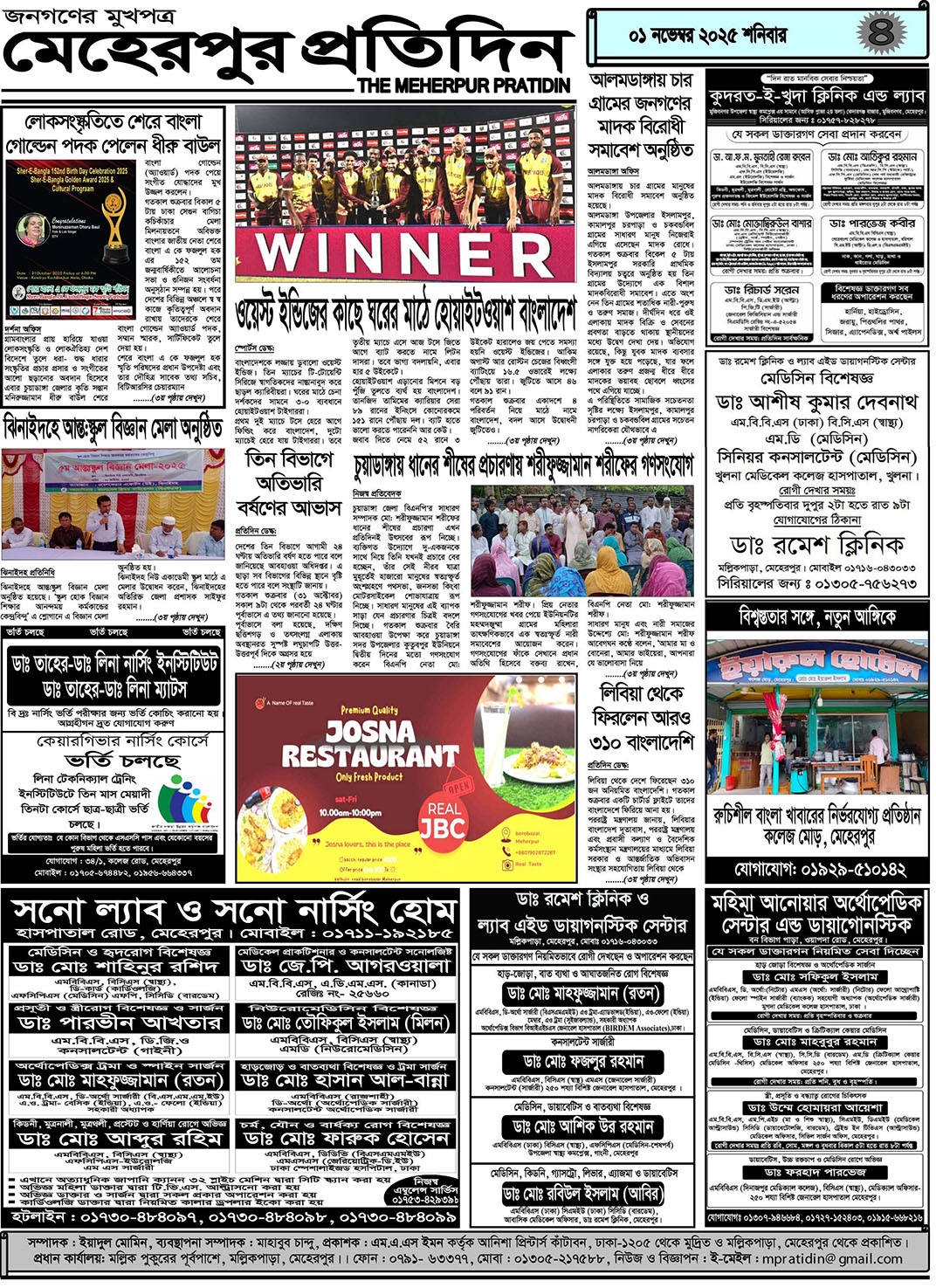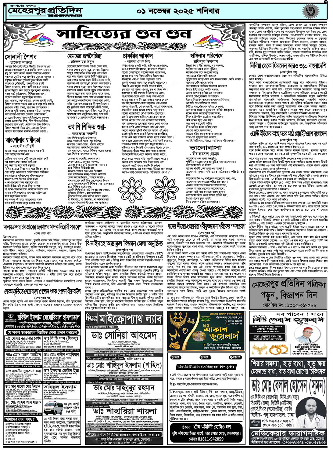 রবিবার | ২রা নভেম্বর, ২০২৫ খ্রিস্টাব্দ | হেমন্তকাল