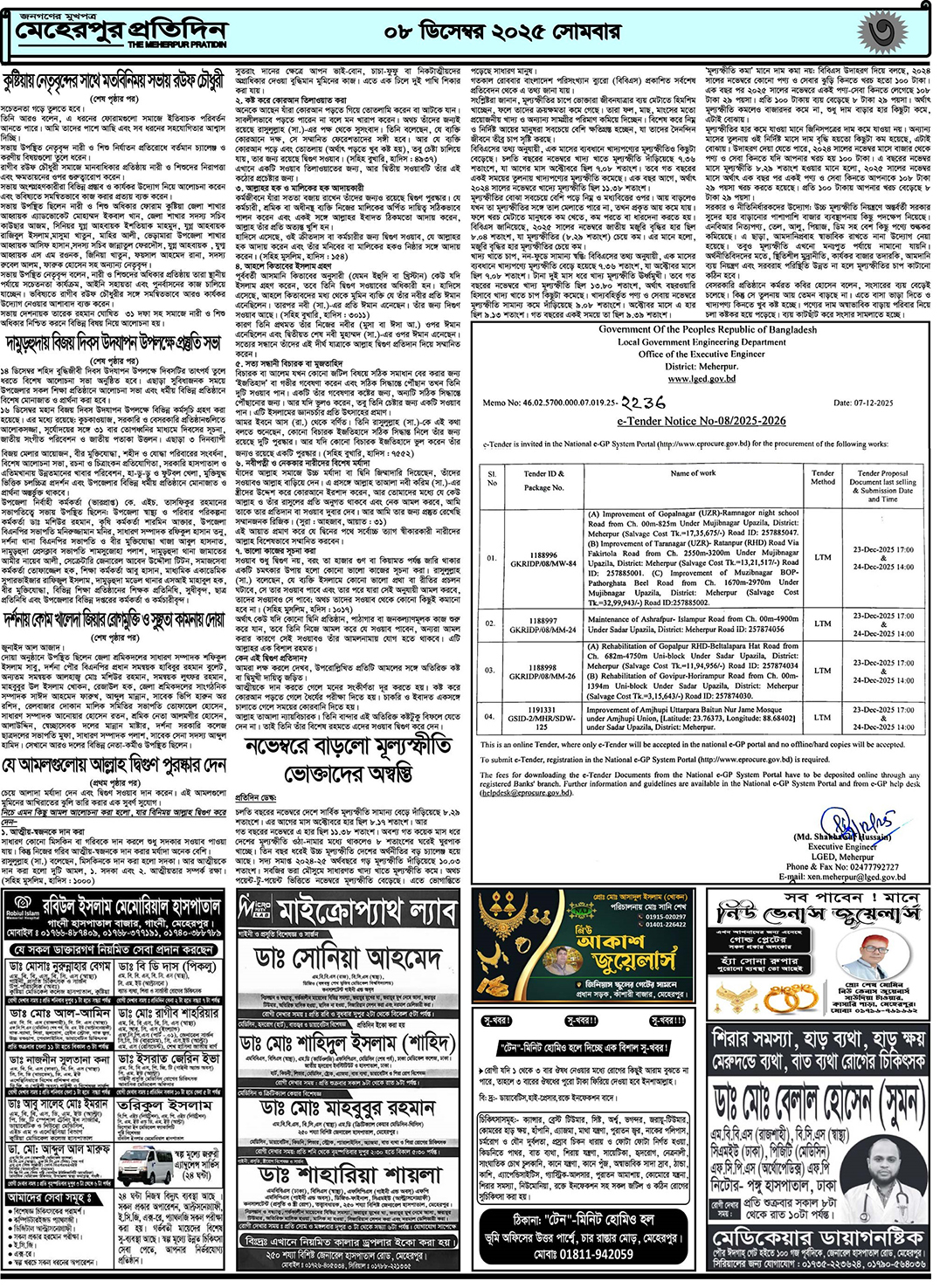 মঙ্গলবার | ১৬ই ডিসেম্বর, ২০২৫ খ্রিস্টাব্দ | শীতকাল