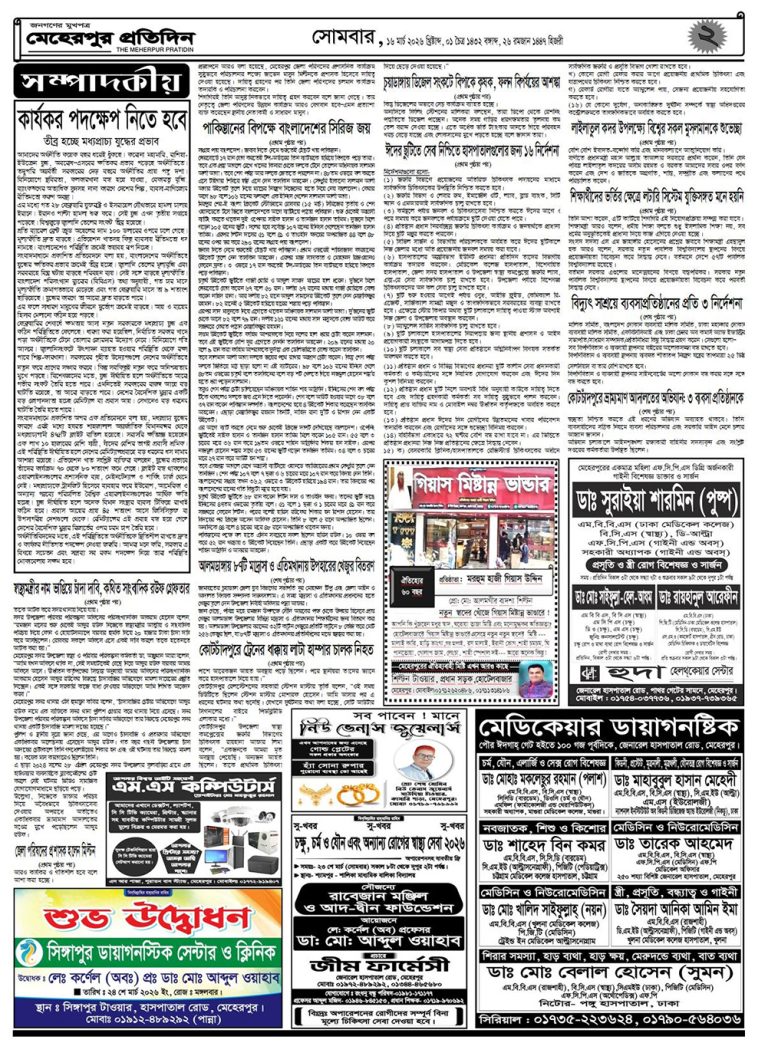মঙ্গলবার | ১৭ই মার্চ, ২০২৬ খ্রিস্টাব্দ | বসন্তকাল