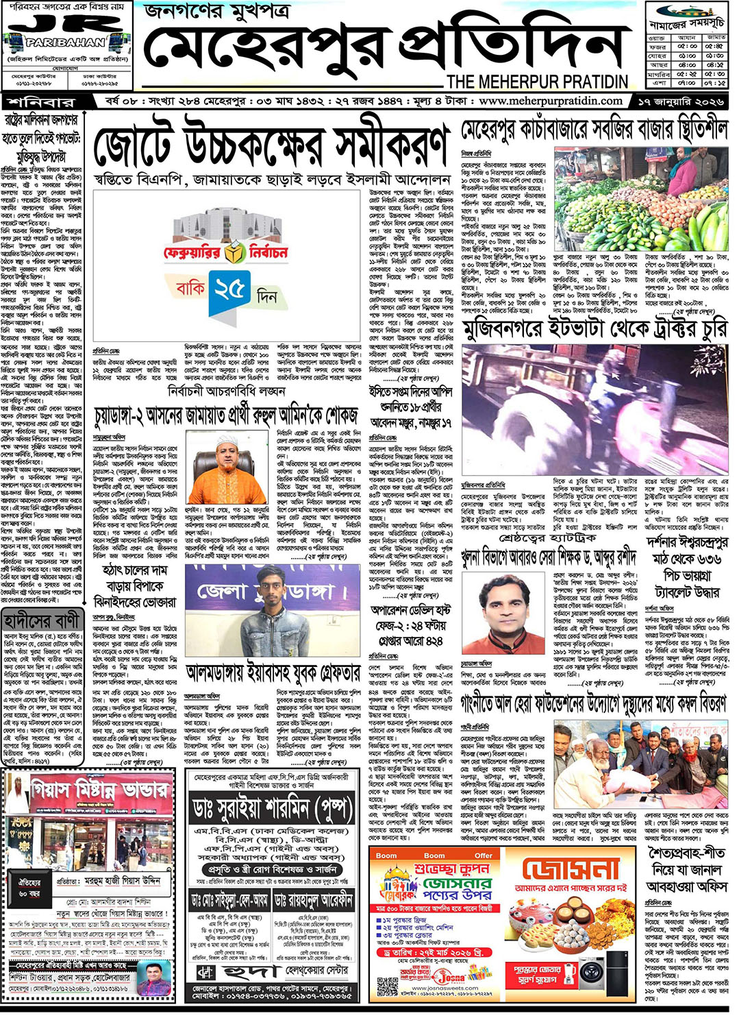 শুক্রবার | ১৩ই ফেব্রুয়ারি, ২০২৬ খ্রিস্টাব্দ | শীতকাল