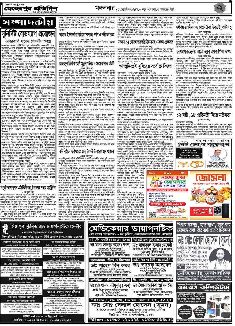 মঙ্গলবার | ২৪শে মার্চ, ২০২৬ খ্রিস্টাব্দ | বসন্তকাল