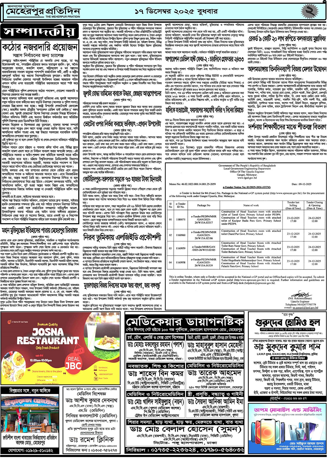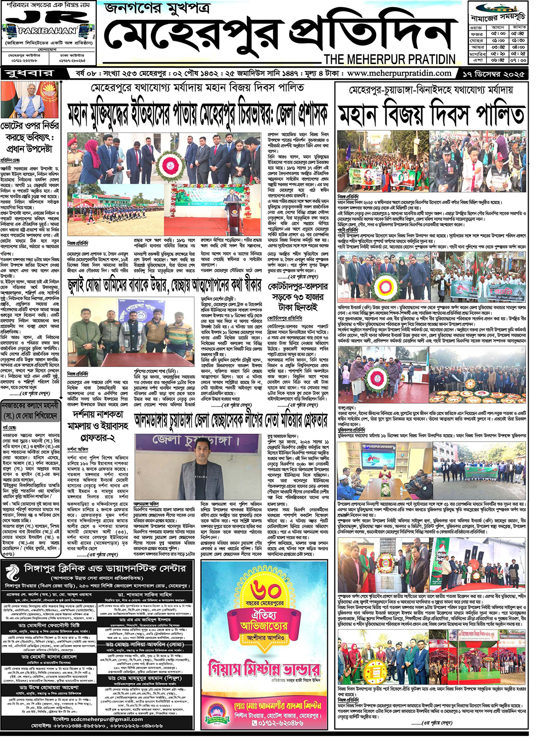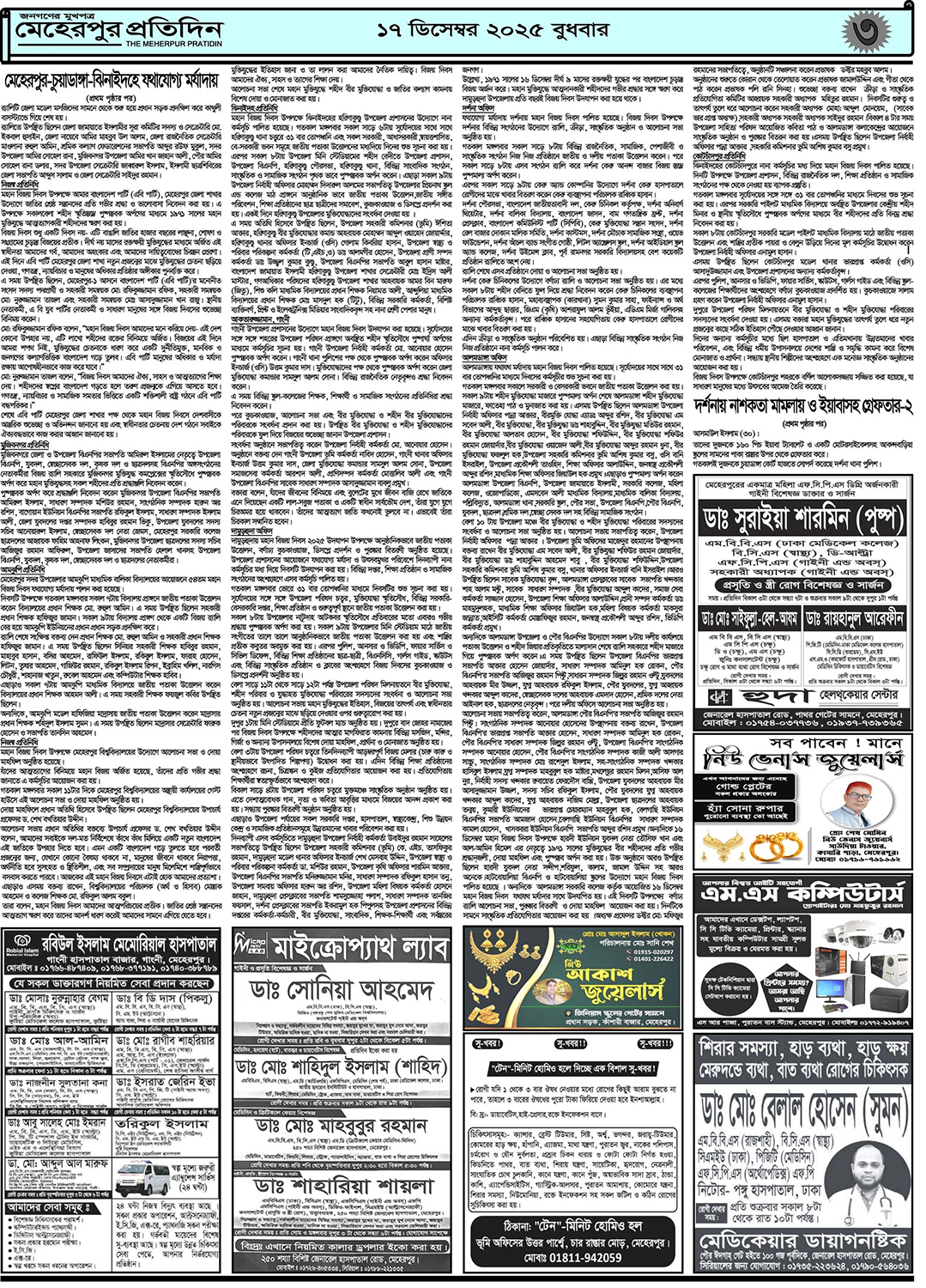বৃহস্পতিবার | ১৮ই ডিসেম্বর, ২০২৫ খ্রিস্টাব্দ | শীতকাল