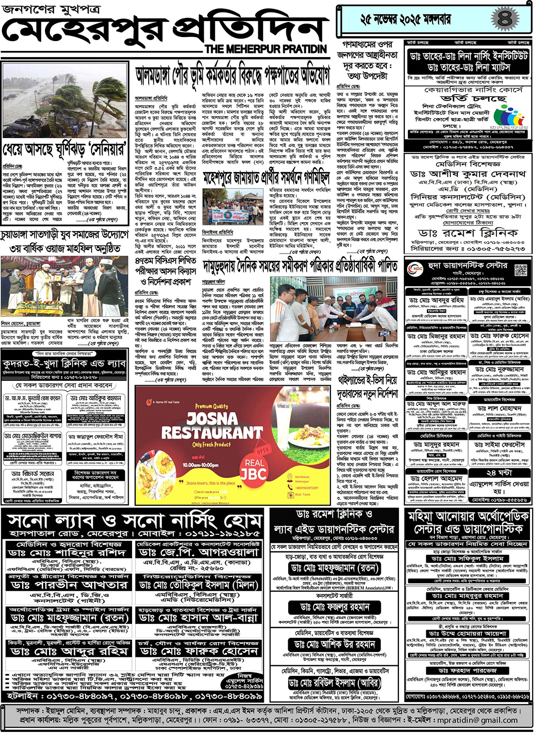 বুধবার | ২৬শে নভেম্বর, ২০২৫ খ্রিস্টাব্দ | হেমন্তকাল