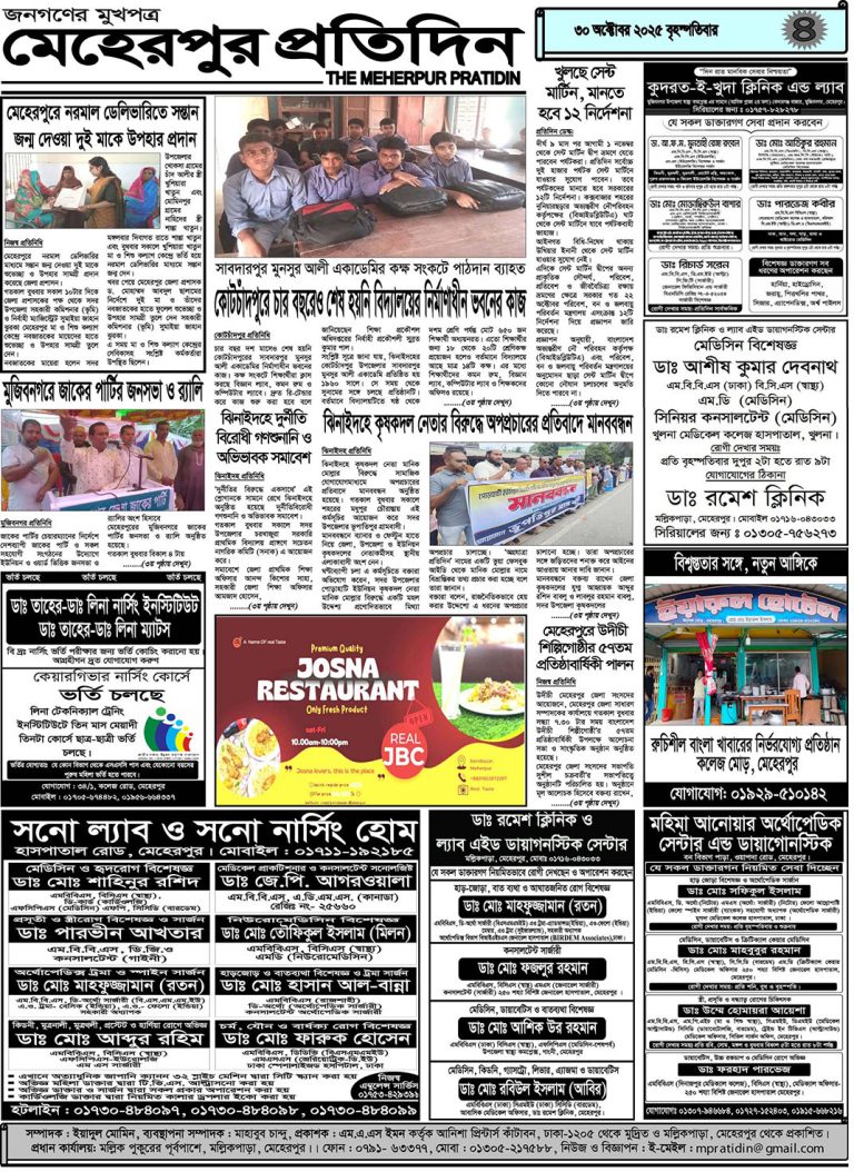 শুক্রবার | ৩১শে অক্টোবর, ২০২৫ খ্রিস্টাব্দ | হেমন্তকাল
